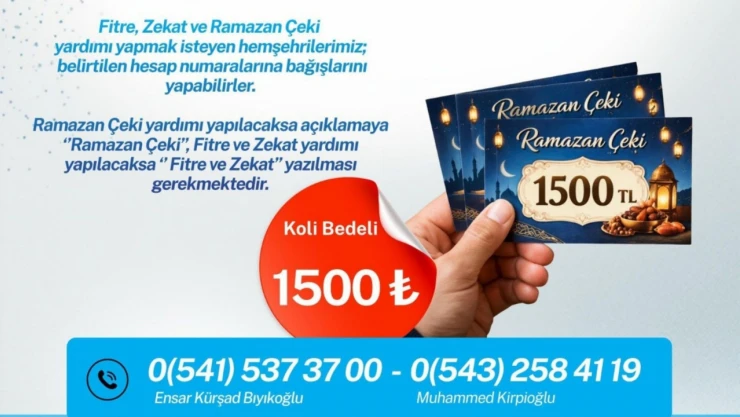 Ülkü Ocakları tarafından yapılan bilgilendirmede; “İhtiyaç sahiplerine ulaştırılmak üzere başlattığımız fitre, zekat ve ramazan çeki yardımları kampanyamız başlamıştır. Unutmayalım Ramazan; paylaşma ayı, Allah için sadaka ayıdır. Fitre, zekat ve ramazan çeki yardımı yapmak isteyen hemşehrilerimiz; belirtilen hesap numarasına bağışlarını yapabilirler. Yapılacak yardım türü açıklamaya ‘Yardım Çeki’, ‘Fitre’ ve ‘Zekat’ yazılması gerekmektedir. Rabbim yapılacak hayırları şimdiden kabul eylesin” denildi.