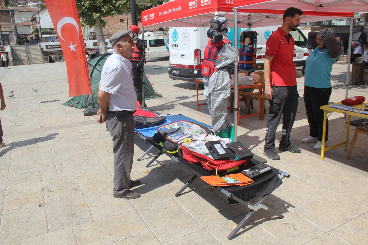 Açılan stant hakkında bilgi veren, UMKE gönüllüsü Bilal Ödemiş; “UMKE Türkiye genelinde bugün 4-10 Ağustos UMKE Haftası olarak ülke genelinde yapılmakta. Kastamonu UMKE ve genel anlamda Türkiye UMKE olarak birçok afetle görev aldık. Bunlar deprem, sel, heyelan, çığ. Aklınıza göre tüm her türlü afetlerde görev aldık. Kendi ilimizde de birçok görevde, yine arama kurtarma görevlerinde, trafik kazalarında, kayıp vakalarında birçok kez görev aldık. Kastamonu UMKE olarak bugün Kastamonu Nasrullah Meydanı’nda hem UMKE Haftası'nda arkadaşlarımızla birlikte UMKE tanıtımını yapmak amacıyla hem de yine görev bilincimizi yeniden kazanmak amacıyla birlikteyiz. Bugün Kastamonulu vatandaşlarımıza UMKE tanıtımını, kaldığımız imkânları, gördüğümüz zorlu şartları ve karşımıza çıkabilecek olumsuz şartlarda neler yapacağımıza dair bir çalışma yapıyoruz. Kastamonu halkıyla bugün birlikteyiz. Vatandaşlarımız zaten bunu yılda en az bir ya da iki kez biz yapıyoruz. Vatandaşımızın hem Kastamonu UMKE’ye hem de bu tarz etkinliklere çok büyük ilgisi var. Bugün aynı zamanda vatandaşlarımıza yetişkin çocuk ve bebekler de Ulusal Medikal Kurtarma Ekibinin bir ufak butik eğitimi, ilk yardım eğitimi de verilecek. Hem standımıza ziyarete gelen misafirlerimize Kastamonu UMKE adı altında ilk yardım eğitimlerinden sunacağız vatandaşlarımıza. Yine ekipmanlarımızı tanıtacağız. Vatandaşlarımızın çok ilgisi var. Kastamonu halkı UMKE'ye güvensin. Sağlık Bakanlığımıza ve personelimize güvensin. Allah hiçbir zaman devletimize, milletimize herhangi bir afet yaşatmasın. Ama herhangi bir olumsuz durumda biz Kastamonu UMKE olarak her zaman vatandaşımızın yanındayız” dedi.