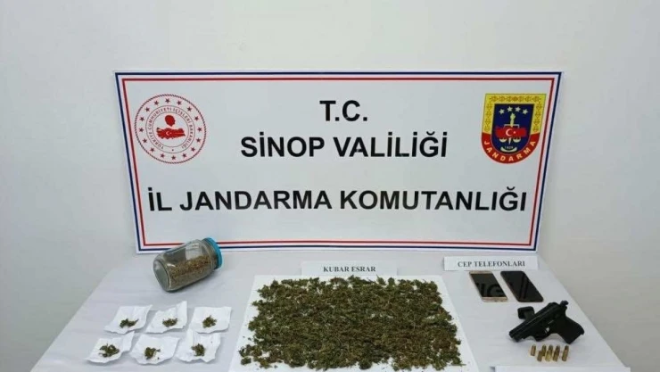 Sinop İl Jandarma Komutanlığınca uyuşturucu tacirlerine yönelik operasyon gerçekleştirildi. Türkeli ilçesinde yapılan aramada 650 gram kubar esrar ve 1 adet ruhsatsız tabanca geçirildi. Olayla ilgili 2 şüpheli şahıs hakkında adli işlemler başlatıldı.