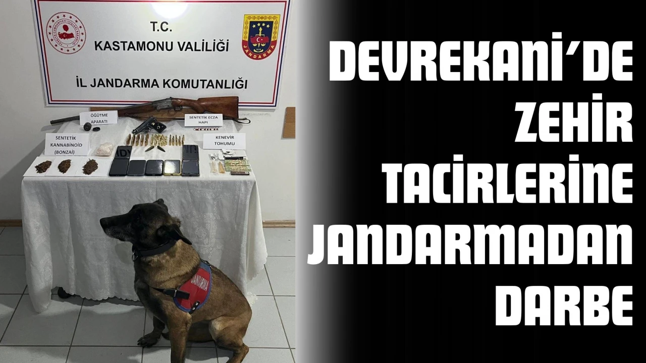 Kastamonu İl Jandarma Komutanlığı tarafından ‘narkotik suçlarla mücadele’ kapsamında gerçekleştirilen teknik ve fiziki takip çalışmaları neticesinde Devrekani ilçesinde 8 şüpheliye yönelik 9 farklı adreste yapılan aramalarda 57 gram sentetik kannabinoid katkılı tütün, 18 adet sentetik ecza hapı, 3 gram kenevir tohumu, 1 adet uyuşturucu madde öğütme aparatı, 19 adet kilitli poşet, 1 adet ruhsatsız tabanca, 70 adet tabanca fişeği, 1 adet ruhsatsız av tüfeği, 7 adet cep telefonu, 7 adet SIM kart ele geçirildi. Operasyonlarda gözaltına alınan 8 şüpheli hakkında adli işlem başlatıldı.