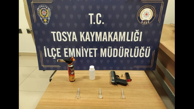 Edinilen bilgiye göre; Tosya İlçe Emniyet Müdürlüğü ekiplerince uyuşturucu madde kullanan ve ticaretini yapan şahıslar üzerinde yapılan çalışma sonucu tespiti yapılan iki ikamet, bir araç ve sekiz şansın üstünde arama yapıldı. Yapılan arama sonucu 1 adet ruhsatsız tabanca, 220 ml uyuşturucu madde olduğu değerlendirilen sıvı, 3 adet uyuşturucu içiminde kullanılan düzenek ile bir miktar metamfetamin maddesi ele geçirildi. Adli makamlara mevcutlu olarak sevk edilen 4 şahıs tutuklanarak ceza infaz kurumuna teslim edildi.