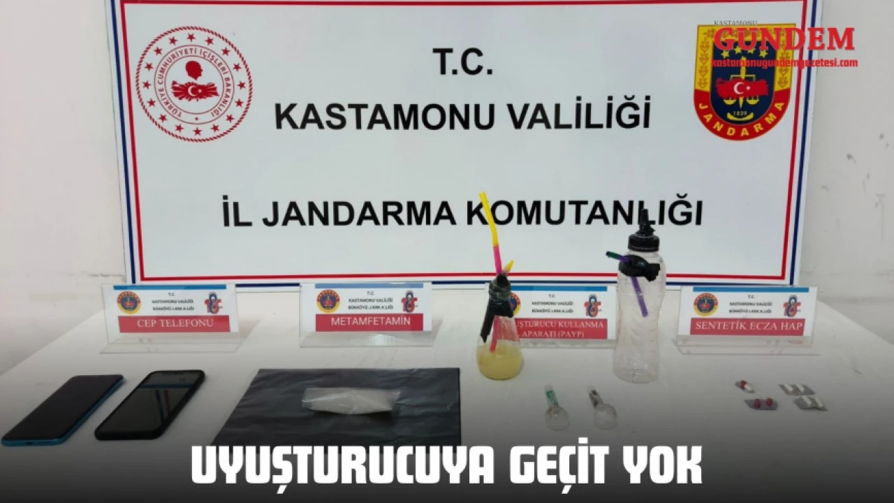 Edinilen bilgiye göre; İl Jandarma Komutanlığı ekiplerince uyuşturucu ile mücadele kapsamında titizlikle sürdürülen istihbarat çalışmaları neticesinde, il dışından Kastamonu’ya uyuşturucu madde getirileceği bilgisi üzerine operasyon gerçekleştirildi. Operasyonda; 28 g metamfetamin maddesi, 7 adet sentetik ecza hapı, 2 adet uyuşturucu kullanma aparatı (BONG), 2 adet uyuşturucu kullanma aparatı (PAYP), 2 adet cep telefonu, 2 adet SIM kartı ele geçirildi. Olayla ilgili 2 şüpheli şahıs gözaltına alınarak adli makamlara sevk edildi.