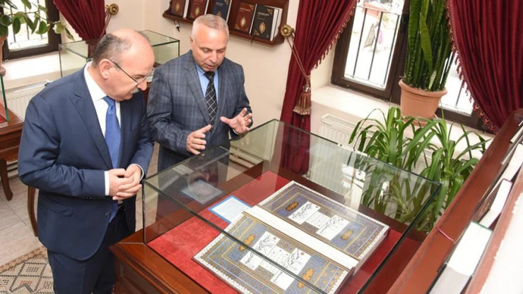 Vali Yaşar Karadeniz kurum ziyaretleri kapsamında ilimizde bulunan Yazma Eser Kütüphanesi’ne giderek incelemeler bulundu.
