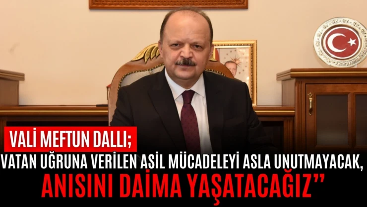 Vali Dallı mesajında; “15 Temmuz, milletin, milli iradenin, demokrasiye gönül verenlerin zaferidir. 15 Temmuz hakkın batıla, adaletin zulme, istiklalin istiskale galip gelmesinin adıdır. Milletimiz 15 Temmuz'daki direnişi ile hem bir darbe girişimini püskürtmüş hem de ülkemizi teslim almayı hedefleyen bir işgal teşebbüsünü engellemiştir. Genci yaşlısıyla bu millet Türkiye'nin geçilmez olduğunu tüm dünyaya bir kez daha göstermiştir. Hain darbe girişiminin yıl dönümünde, demokrasi şehitlerimizi rahmet ve minnetle anıyor, gazilerimize şükranlarımı sunuyorum. Vatan uğruna verilen asil mücadeleyi asla unutmayacak, anısını daima yaşatacağız” ifadelerini kullandı.