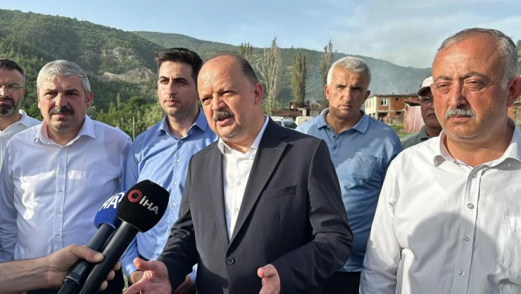 Köye giden Vali Meftun Dallı, ekiplerden çalışmalarla ilgili bilgi aldı. Vatandaşlara ‘geçmiş olsun’ dileklerinde bulunan Vali Dallı, yangınla ilgili açıklamalarda bulundu. Yangında can kaybının olmamasının sevindirici olduğunu belirten Vali Dallı, “Metruk bir evde yangın çıktı. Ekiplerimiz yangını kontrol altına aldı. Orman Bölge Müdürlüğü ekiplerimiz, helikopter müdahale etti. Şu an yangın kontrol altında. Büyük oranda söndürülmüş durumda. Soğutma çalışmaları devam ediyor. Bunun en önemli sebebi aşırı hava sıcaklıkları ve havadaki nem oranının düşmesi. Muhtemelen yangında bu etkili oldu. Can kaybımız yok. 3 hayvanımız telef olmuş. Genel hayatı etkileyen bir yangın olarak sayılacak. Evi yanan vatandaşlarımızın evleri, tespit çalışmalarının sonunda yeniden yapılacak inşallah. İlgili tüm kurumlarımızla mağdur olan vatandaşlarımızın tüm ihtiyaçlarının karşılanması için gereken ne varsa yapacağız. Kaymakamlığımız, Sosyal Yardımlaşma Vakfımız, AFAD, Kızılay burada. Diğer kurumlarımız da üstlerine düşeni yapacak. Vatandaşlarımızı mağdur etmeyeceğiz, ihtiyaçlarını karşılamaya çalışacağız. Allah beterinden esirgesin, bütün vatandaşlarımıza geçmiş olsun” dedi.
