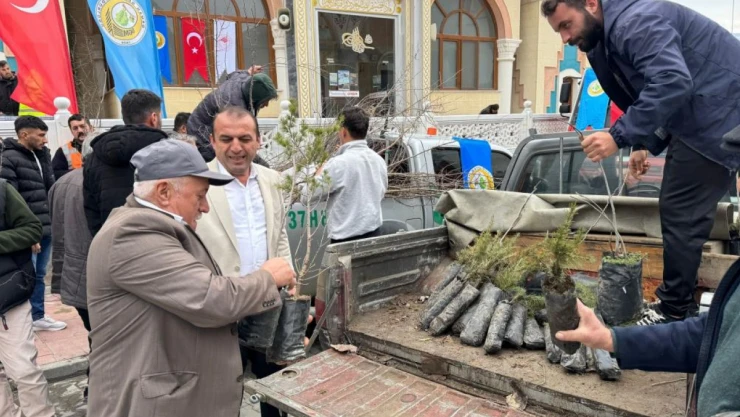 Hanönü'nde Cuma namazı çıkışında Hanönü Orman İşletme Müdürlüğü ekiplerince cemaate fidan dağıtımı yapıldı.