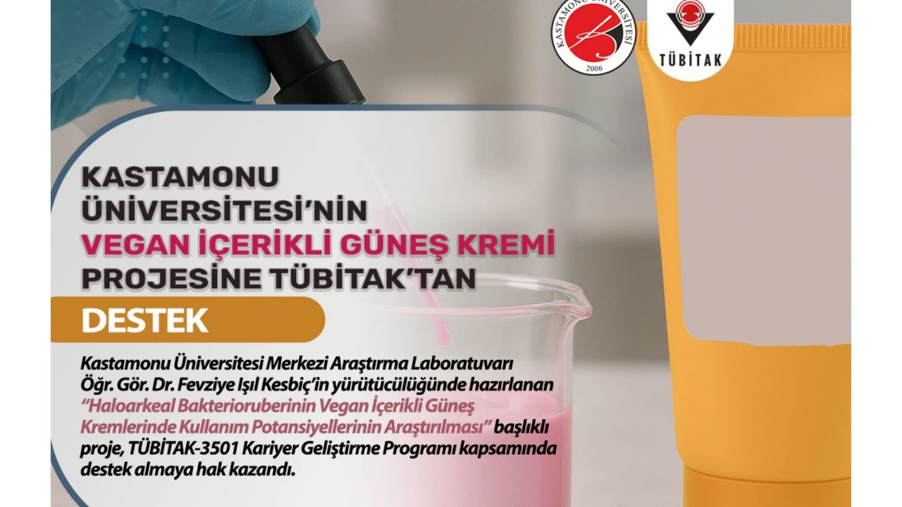 Kastamonu Üniversitesi Merkezi Araştırma Laboratuvarı Öğr. Gör. Dr. Fevziye Işıl Kesbiç’in yürütücülüğünde hazırlanan “Haloarkeal Bakterioruberinin Vegan İçerikli Güneş Kremlerinde Kullanım Potansiyellerinin Araştırılması” başlıklı proje, TÜBİTAK-3501 Kariyer Geliştirme Programı kapsamında destek almaya hak kazandı.