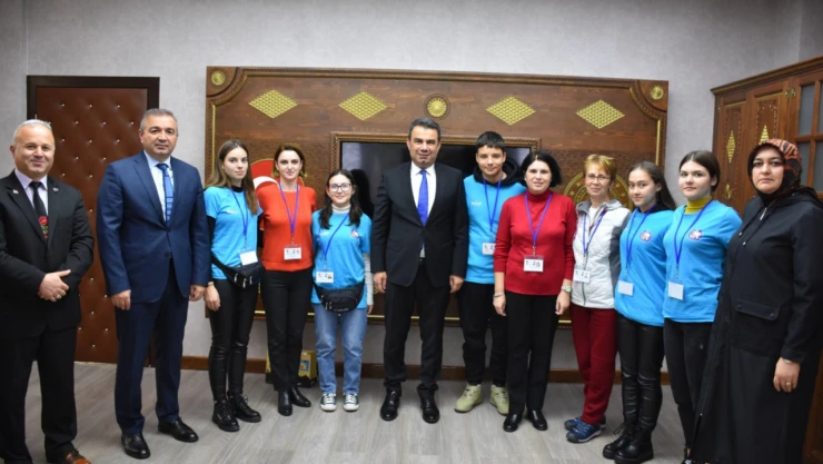 Erasmus+ Projesi kapsamında yabancı öğrenci ve öğretmenler İl Milli Eğitim Müdürü Hasan Gümüş'ü ziyaret etti.