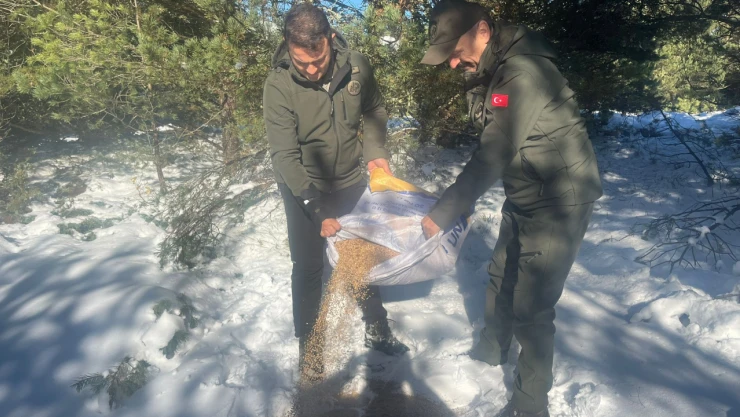 Karabük'te zorlu kış şartlarında yem ve yiyecek bulmakta güçlük çeken yabandaki canlılara Tarım ve Orman Bakanlığı Doğa Koruma ve Milli Parklar (DKMP) 10. Bölge Müdürlüğü Karabük Şube Müdürlüğü ile Çevre, Doğa ve Hayvanları Koruma Timi iş birliğince gerçekleştirilen yem ve yiyecek desteği devam ediyor.