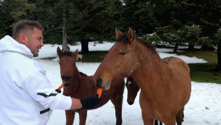 Bolu’nun yılkı atlarıyla meşhur At Yaylası geçtiğimiz hafta etkili olan kar yağışı nedeniyle beyaz örtüyle kaplandı. Kent merkezine 10 kilometre uzaklıkta bulunan bin 150-bin 250 metre rakımda yer alan ve 7 yayladan oluşan At Yaylası’nda yaşayan Bolu’nun meşhur yabani yılkı atları yiyecek bulmakta zorlanıyor. Yılkı atları için doğasever vatandaş Gökhan Bilen, kasalarla yaylaya götürdüğü havuçları atların önüne döktü ve elleriyle de atlara havuç verdi. Bilen’in eliyle atı beslediği anlar sosyal medyada büyük ilgi gördü.