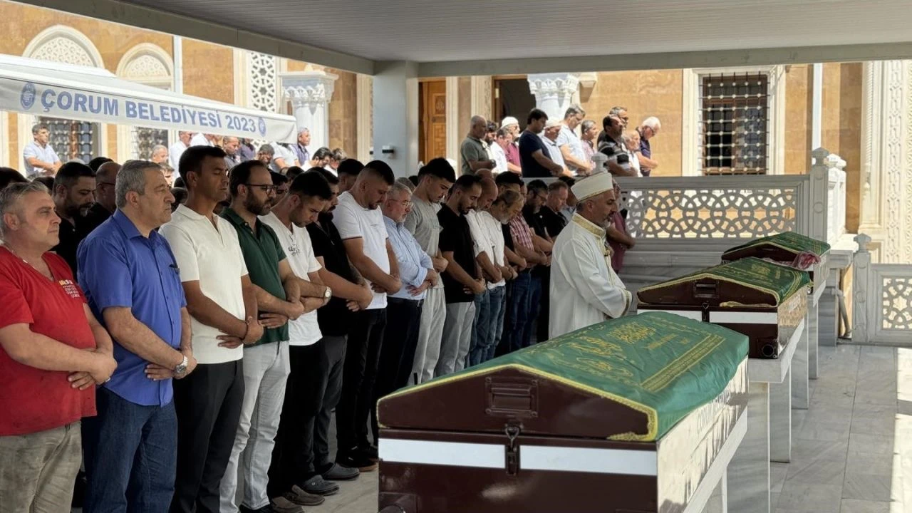 Çorum'da yağ tankına düşerek hayatını kaybeden anne ve oğlu son yolculuğuna uğurlandı.