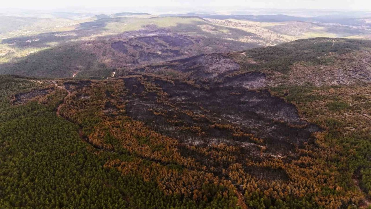 Karabük'te yaklaşık 4 günlük çalışma sonunda büyük oranda kontrol altına alınan orman yangının etkili olduğu alanlar dron ile görüntülendi.