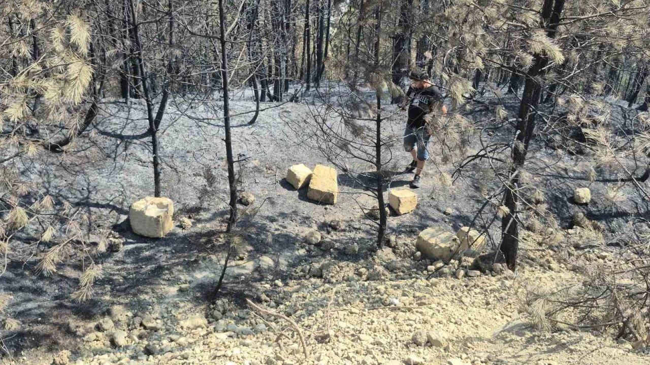 Ekiplerin hızlı müdahalesi ile büyük faciadan kıl payı kurtulan köylüyü, şimdi de tarihi eser heyecanı sardı. Alevler nedeniyle orman içerisinde açılmak istenen yol çalışmasında toprak altından küp, dikdörtgen şeklinde ve düzgün kesilmiş taşlar gün yüzüne çıktı.