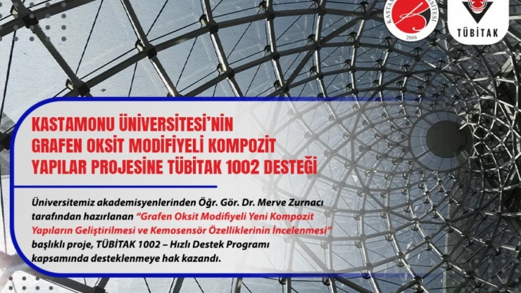 Kastamonu Üniversitesi akademisyenlerinden Öğr. Gör. Dr. Merve Zurnacı tarafından hazırlanan “Grafen Oksit Modifiyeli Yeni Kompozit Yapıların Geliştirilmesi ve Kemosensör Özelliklerinin İncelenmesi” başlıklı proje, TÜBİTAK 1002 – Hızlı Destek Programı kapsamında desteklenmeye hak kazandı.