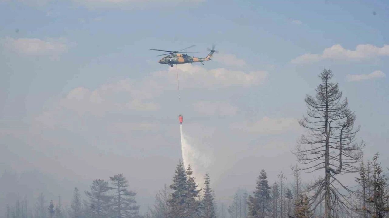 Çankırı Valiliği, Yapraklı ilçesi Sarıkaya köyü mevkiinde çıkan orman yangınına 7 helikopter ve 49 kara aracıyla toplam 216 personelin müdahale ettiğini açıkladı.