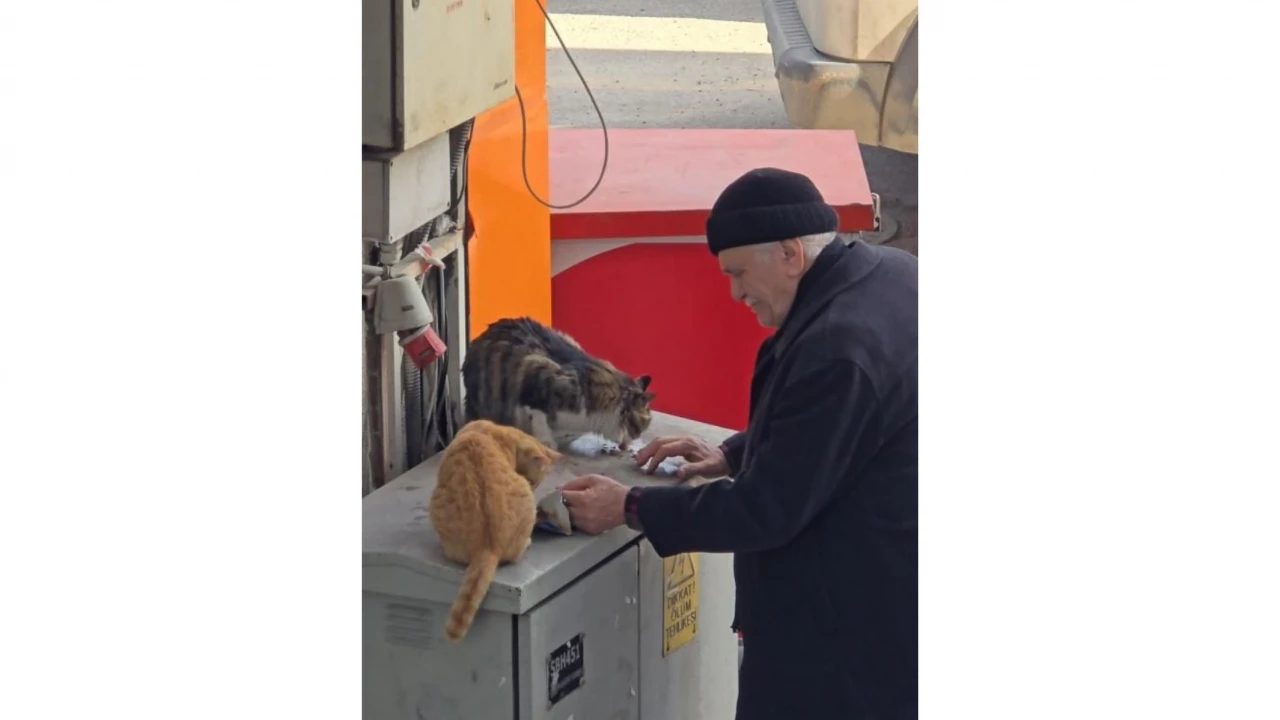 Sürekli sokak kedileri için mama aldığı öğrenilen yaşlı adamın sokak hayvanlarına gösterdiği şefkat ve duyarlılık, izleyenlere yüreklerini ısıttı.