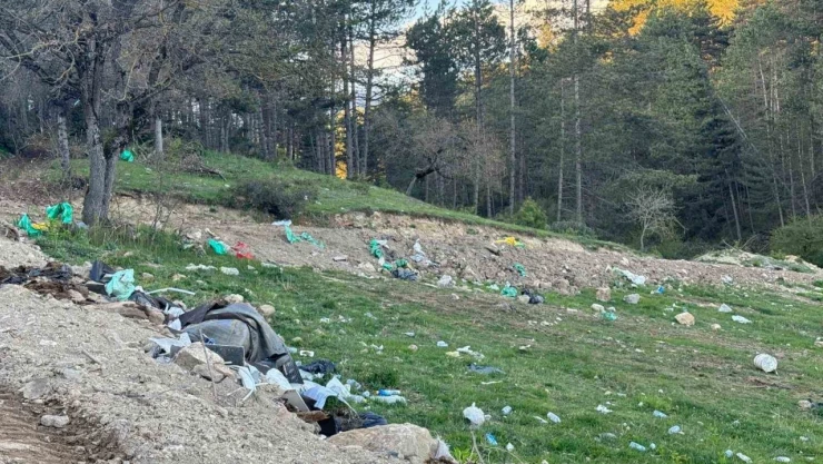 Bolu'nun At Yaylası bölgesinde ormanlık alanda vatandaşların attığı çöp yığınları çirkin manzaraya sahne oldu.