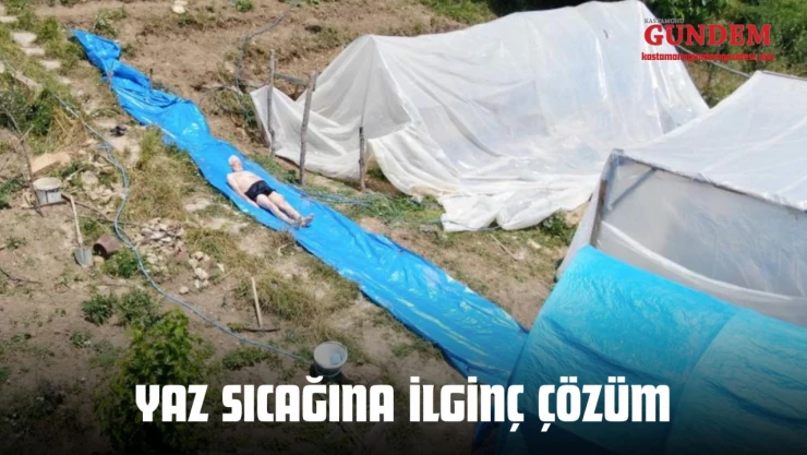 Kastamonu'nun Ağlı ilçesinde yaşayan bir vatandaş, köyde serinlemek için branda kullanarak kendi aquaparkını yaptı.