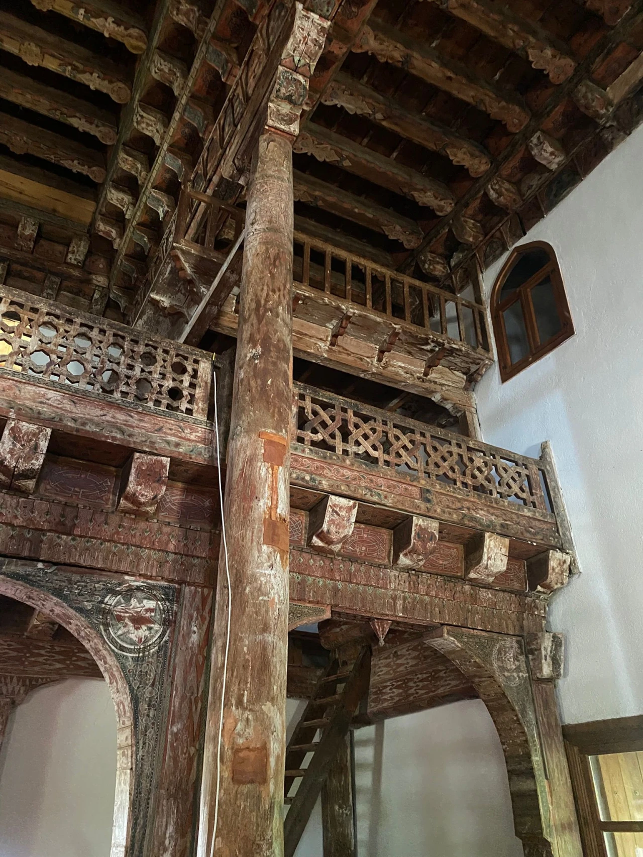Caminin ahşap çatısı hiçbir metal aksam veya çivi kullanılmadan, bindirme tekniği ile yapılmıştır.