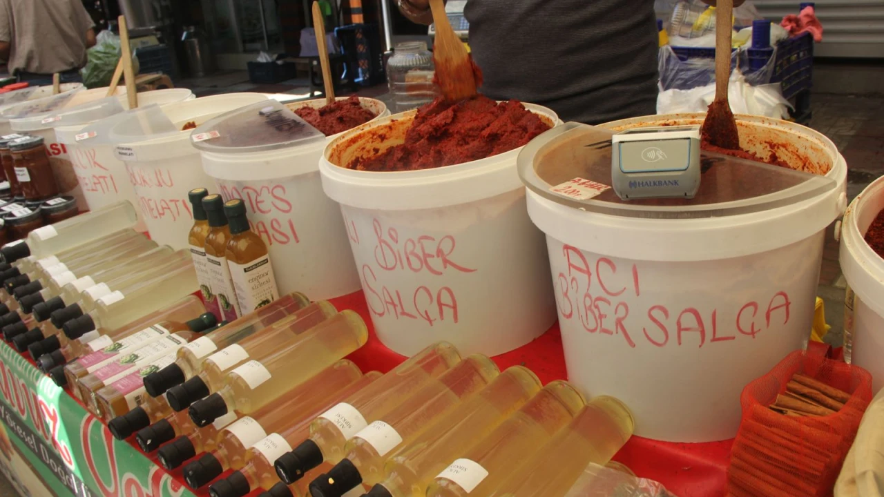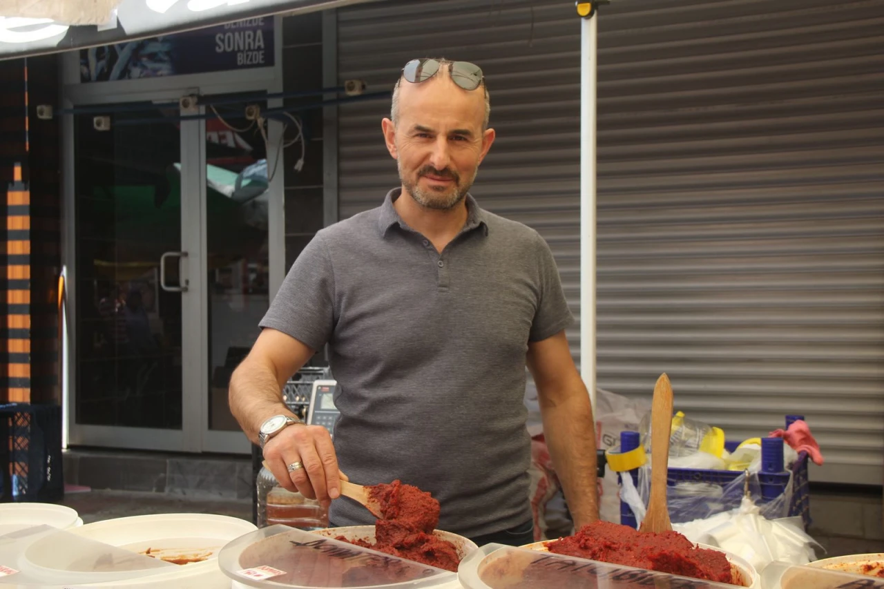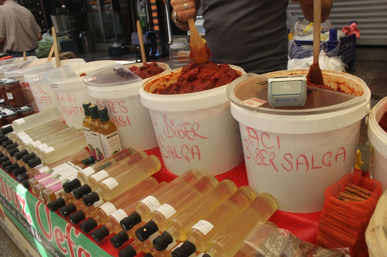 Yöresel Doğal Ürünler Firma Sahibi Yavuz Vefaoğlu, semt pazarında Hatay'dan getirdiği salçaların farklılıkları ve saklanma koşulları hakkında açıklamada bulundu.