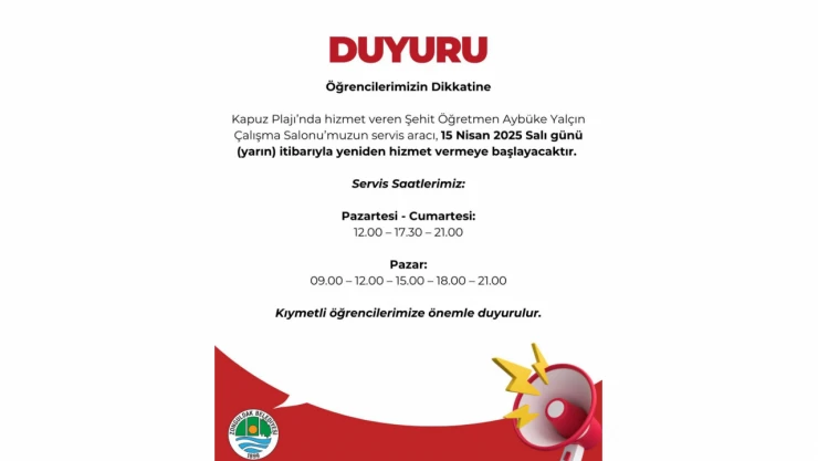 Belediye tarafından yapılan açıklamada servis saatleri de paylaşıldı.