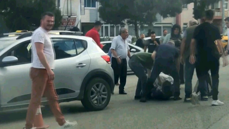 Karabük'te taksi şoförü ile vatandaşın yol ortasındaki kavgası cep telefonu kamerasına yansıdı. Kavga sırasında vatandaşın yakını olan bir kadının ise eline aldığı taşı tasiciye vuracağı sırada vatandaşlar engel oldu.
