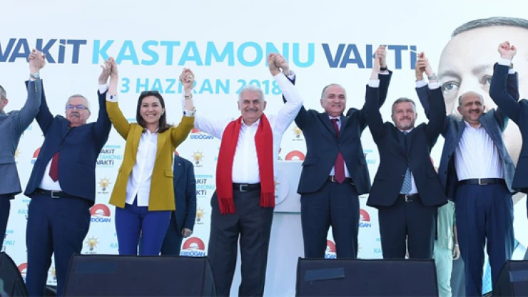 BAŞBAKAN BİNALİ YILDIRIM, KASTAMONU’DAN MUHALEFETE YÜKLENDİ Başbakan Binali Yıldırım, Kuzeykent Miting Alanı’nda Kastamonulular ile bir araya geldi. Başbakan Yıldırım, mitingde Cumhurbaşkanı Adayı Muharrem İnce’ye ve muhalefete yüklendi. Kastamonu Kuzeykent miting alanında halka hitap eden AK Parti Genel Başkan Yardımcısı ve Başbakan Binali Yıldırım'a Başbakan Yardımcısı Fikri Işık, Bilim, Sanayi ve Teknoloji Bakanı Dr. Faruk Özlü, AK Parti Genel Başkan Yardımcısı Fatih Şahin ve partililer eşlik etti. “BU TOPRAKLARDA ŞÜHEDA BEREKETİ VAR” AK Parti'nin 16 yıldır aynı aşkla Recep Tayyip Erdoğan'ın başkanlığında hizmet verdiğini aktaran Başbakan Binali Yıldırım; “ Bu ülkenin insanları, bu güzel topraklara, Anadolu topraklarına aşkla, sevdayla bağlıdır. İşte AK Parti 16 yıldır aynı aşkla, aynı şevkle Türkiye için liderimiz Recep Tayyip Erdoğan'ın başkanlığında hizmet ediyor. Size milletin adamının Türkiye sevdalısı Cumhurbaşkanımızın selamını getirdim. Bizim siyasetimizde hizmet var. Bizim siyasetimizde eser var, emek var, değer var. Milletimizle kurduğumuz bağlar, temeli sağlamdır. Millet güçlü olursa biz güçlü oluruz. Milletin itibarı yükseldikçe biz görev yapmış oluruz. Hamdolsun, güçlüyüz. Çünkü yürüdüğümüz yolda millet bizimle beraber. Kastamonu bizimle beraber, ak kadınlar, ak gençler bizimle beraber. Kastamonu ilk günden beri bu yolda bizimle beraber yürüyor. Kastamonu AK Parti'ye hizmet eden Cumhurbaşkanına sahip çıkıyor. İstiklal mücadelesinde Mehmet Akif'e ev sahipliği yapan Kastamonu, bugün de İstikbal mücadelemizi veren Recep Tayyip Erdoğan'a sahip çıkıyor mu? Kastamonu o gün olduğu gibi bu günde ülkesine sahip çıkıyor” diye ifade etti. “CUMHUR İTTİFAKI YENİKAPI RUHUNUN DEVAMIDIR” Başbakan Binali Yıldırım, Kastamonu halkının 24 Haziran'ı iple çektiğine de vurgu yaparak, CHP Cumhurbaşkanı Adayı Muharrem İnce'ye de Kastamonu şivesiyle cevap vererek; “Size bugünlerden çok daha parlak bir geleceğin müjdesini getirdim. Hep beraber Kastamonu yeni bir tarih yazmaya var mısınız? Türkiye düşmanlarına, teröre, FETÖ'ye hak ettiği dersi verecek miyiz? Şu Tayyip Erdoğan gitse de Türkiye'de istediğimiz gibi at oynatalım diyen emperyalistelere, onlara işbirlikçilerine Osmanlı tokadını vuracak mıyız? Kastamonu hazırım diyor. 24 Haziran'ı iple çekiyor. Allah bu millete zeval vermesin. Allah Kastamonu'ya kara gün göstermesin. Tarihi bir dönemece geldik. Geleceğimiz için önemli bir karar vereceğiz. İnşallah 16 yıldır yazdığımız destana yeni bir destan ilave edeceğiz. Kastamonu tarih yazmayı bilir. Kastamonu ak kadınlar, bu sefer çıtayı daha yükseğe koyuyoruz. Vakit Kastamonu vakti diyor muyuz. Vakit Türkiye vakti diyor muyuz? Milletin adamı Recep Tayyip Erdoğan'ı Cumhurbaşkanı seçiyor muyuz? Milletin partisi AK Parti'yi en güçlü şekilde meclise gönderiyor muyuz? Kastamonu'da 3'te 3 yapıyor muyuz? Bu iş bitmiş. Biz boşuna nefes tüketiyoruz, Kastamonu kararını vermiş. Güçlü meclis, güçlü hükümet, güçlü Türkiye. Hedefimiz durmak yok, yola devam. Kastamonu, bak Kastamonu ne diyor. Muharrem İnce. 'Yola gelüsen gelüsün, gelmezsen gendün bülüsün.' Cumhur İttifakı milletin huzuru, devletin refahı, güvenliği için yola çıkmış bir ittifaktır. Cumhur ittifakı Yenikapı ruhunun devamıdır. 15 Temmuz'da alçaklara dersini veren, ay yıldızlı bayrakları indirtmeyen, ezanları dindirtmeyen, aziz Türk Milleti'nin ittifakıdır. Sizler bu meydanda ezana, bayrağa, demokrasiye, Cumhurbaşkanına sahip çıktınız. Hainlere diz çöktürdünüz. Türkiye'nin önünü kesmek isteyenlere fırsat vermediniz. Ama Türkiye'nin iyiliğini istemeyenlerin oyunları henüz bitmedi. Darbeyi bastırdık ekonomik kriz üreterek, finansal kumpaslar kurarak üzerimize gelmeye devam ediyorlar. 24 Haziran'da Kastamonu bunların bütün oyunlarını başlarına geçirecek miyiz? İstikrar sürsün. Türkiye büyüsün. Cumhur İttifakının karşısında yer alanları dinliyorsunuz. Bu ülkenin, bu milletin hayrına yararını ağızlarından bir şey çıktı mı? Bunların derdi millete hizmet değil, ülkeyi daha ileri götürmek değil. Eğer le bir projeleri olsaydı şimdiye kadar çoktan anlatırlardı. Ilgaz Tüneli’ni yaptık diyebiliyorlar mı? 130 yıllık İnebolu Limanı’nı yaptık diyorlar mı? Kastamonu havalimanını yaptık diyebiliyorlar mı? Cide yolunu yaptık diyorlar mı? Diyemezler. Çünkü bunların işi laf üstüne laf koymak, AK Parti'nin işi taş üstüne taş koymak. Eser, proje yapmak milletin gönlüne yollar yapmak” ifadelerini kullandı. “FETÖ'NÜN EN SEVMEDİĞİ KURULUŞU KAPATMAYI VAAT EDİYORLAR” Başbakan Binali Yıldırım, şöyle devam etti: “Haklarını yemeyelim. Bunların bir projeleri var, yapılanı bozmak. Yıkmak, hizmetleri durdurmak. Milletin faydasına olan her şeyi yok etmek, kapısına kilit vurmak. Bunların başka hiçbir projesi yok. TİKA'yı kapatacaklarını söylüyorlar. TİKA dediğin şey 80 ülkede Türkiye'nin bayrağını taşıyan tarihi kültürel miraslarını ortaya çıkartan, yoksul, yardıma ihtiyacı olan Afrika ülkelerinde okul açan, kuyu açan, sağlık merkezleri açan, Mostar köprüsünü yapan, camileri kültür merkezlerini ihya eden Türkiye'nin Osmanlı'dan gelen eserlerini bir bir ayağa kaldıran TİKA'yı kapacakmış. Çünkü FETÖ öyle istiyor. FETÖ'nün dışarıdaki sömürü alanlarına TİKA gereken müdahaleyi yaptığı için rahatsız oldular. FETÖ'nün en sevmediği kuruluşu kapatmayı vaat ediyorlar. Kanal İstanbul'u kapatacağını söylüyor. Kanal İstanbul'a senin hayalin yetmez. Kanal İstanbul Türkiye'nin stratejik bir projesidir. Senin bu projelere gücün ve aklın yetmez. Bunun kararını millet verir, milletin