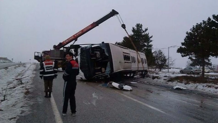 Edinilen bilgiye göre Kastamonu'dan Ankara'ya gitmekte olan 16 KN 602 plakalı yolcu otobüsü, yolun buzlanması nedeniyle, şoförün direksiyon hakimiyetini kaybetmesi sonucu yoldan çıkarak devrildi. Kazanın duyulmasının ardından olay yerine çok sayıda sağlık ekibi ve güvenlik güçleri intikal etti. Edinilen bilgilere göre de 18 kişinin yaralandığı öğrenildi. Yaralılar Çankırı, Akyurt ve Kalecik Hastanelerine sevk edildi. Yan...