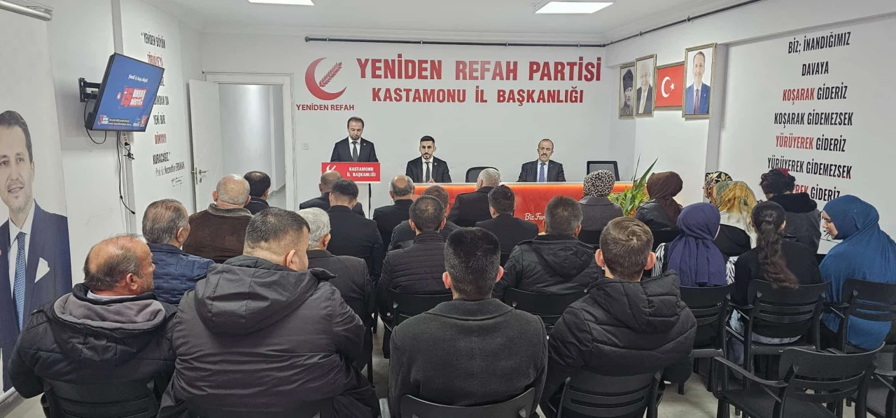 Toplantıda YRP İl Başkanı Akif Güzel; “16 Kasım’da Türkiye’mizin en muhteşem ve en kalabalık Kongresini Ankara Arenada 103 bin kişinin katılımıyla gerçekleştirmenin onurunu ve gururunu hep birlikte yaşadık. Partimizin kuruluşunun 7’nci yılında üye sayısı olarak ve en son ki Yerel seçimde alınan oy oranıyla 3’üncü büyük siyasi partisi haline gelen partimiz Genel Başkanımız Sayın Dr. Fatih Erbakan liderliğinde her gün adım adım zafere doğru gitmektedir. Hükümet taraftarı basın bu büyük gücü her ne kadar görmezlikten gelmeye çalışsa da güneş balçıkla sıvanmıyor. Buradan bir kere daha haykırıyoruz, Milli Görüş gelecek, milletimiz refaha tekrar erecek. Buradan tekraren bir büyük teşekkürü de Kastamonu Teşkilatıma yapmak istiyorum. 400’ü aşkın bir katılım ile otobüsler, minibüsler ve özel araçlarla Ankara’ya akın eden ve Genel Başkanımızı Ankara’da yalnız bırakmayan vefakar teşkilat mensuplarımıza, bizlere gönül veren kıymetli üyelerimize ve üye olmasa da o atmosferi yaşamak için bizlerle Ankara’ya gelen tüm kardeşlerimize binlerce kez teşekkür ediyorum. Ankara’dan verilen mesaj dosta güven düşmana korku vermiştir. Düşman kimdir? Düşman faize ve rant düzenine esir olmuş, liyakati ve hukuku hiçe sayanlardır. Amerika ve Siyonist İsrail ve onlarla işbirliği içerisinde hareket edenlerdir. Şehitlerimizin kemiklerini sızlatan gazilerimizin boynunu bükenlerdir. Ancak müsterih olun, Milletimiz müsterih olsun ki iş başa düştü artık biz varız, artık Yeniden Refah var, Artık Yeniden Erbakan var. Bilindiği üzere, içimiz acıyarak gördük ki, barışı sağlayacağız diye kurulan komisyon PKK lideri eli kanlı terörist Öcalan’ın ayağına İmralı’ya gitti. Toplumsal tepkiye rağmen, Şehit ailelerimizin ve Gazilerimizin tepkisine rağmen bu halka rağmen Öcalan’a meşruiyet kazandırdılar. Milletimiz olanı biten en net haliyle görüyor ve görmekte. Sırf DEM Partinin bir sonraki seçimlerde desteğini alabilmek için bir dönem daha iktidar hevesiyle Anayasayı değiştirmek için bu adımı atıyorlar. Tarih her şeyi yazıyor. Bunu da hem milletimiz hem de tarih asla affetmeyecektir. Öcalan’a Demirtaş’a teröristlere af isteyeni milletimiz asla affetmeyecektir. Daha iki gün önce Hristiyanların Dini Lideri Papa Türkiye’ye geldi ve resmi törenle karşıladı. Ne için geldi Türkiye’ye? İznik’te ayin yapacaklarmış. Ne Ceddimiz Osmanlının ne Türkiye Cumhuriyetinin kurucusu Gazi Mustafa Kemal Atatürk’ün müsaade etmediği böyle bir törene kendilerine Ümmetin lideriyiz diyenler izin verdi. Yüce Yaradanımız Kuranı Kerimde buyuruyor: Yahudileri ve Hristiyanları dost edinmeyin, onlar birbirlerinin dostudurlar. Aklınızı başınıza alın, Siyonist İsrail Büyük Ortadoğu projesi için adım adım ilerliyor, hala Filistin de Müslüman kanı akıyor, barış diye göz boyamaya çalışanlar bu duruma çanak tutuyor. Bize ve tüm insanlığa ‘Bana ne Amerika’dan bana ne İsrail’den’ diyebilecek özü sözü bir Erbakan gerekiyor. İşte bu yüzden diyoruz, iş başa düştü, bize yeniden Erbakan yeniden refah lazım. Buraya uzaktan yakından gelen tüm ilçe başkanlarımıza ve yönetimlerine teşekkür ediyorum. Bizleri yalnız bırakmayan bizlere gönül vermiş tüm üyelerimize teşekkür ediyorum. Tüm ilçe başkanlarımız ve yönetimlerinden beklediğimiz o dur ki, bu inanç ve şuuru hiçbir zaman kaybetmeden ihlas ve samimiyetle çalışalım. Sırtımızdaki yük çok ağır bir yüktür, sorumluluğumuz çok büyüktür. Bu sebeple hiçbir teşkilat mensubumuzun en ufak bir gevşeklik göstermeden çalışması, gece gündüz bu sorumlulukla hareket etmesi elzemdir” dedi.