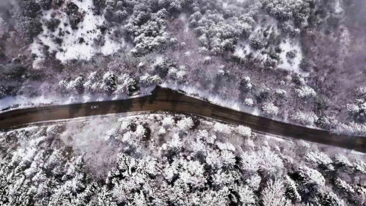 Mart ayında etkili olan kar yağışı sonrası Karabük’ün yüksek kesimleri yeniden beyaz örtüyle kaplandı. Kartpostallık kar manzaraları dronla görüntülendi.