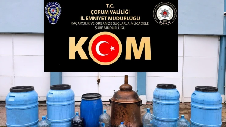 Çorum'da 920 litre el yapımı fermente alkollü içki ile 70 litre satışa hazır alkollü içki ele geçirildi, 1 şüpheli gözaltına alındı.