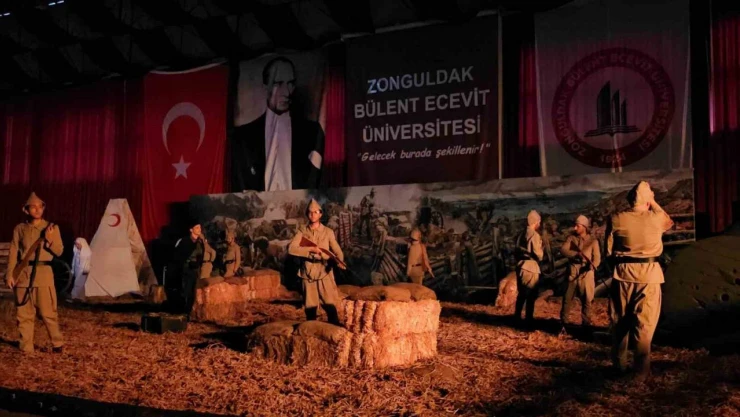 Zonguldak’ta 18 Mart Çanakkale Zaferi ve Şehitleri Anma Günü kapsamında Bülent Ecevit Üniversitesi Kapalı Spor Salonu’nda Çanakkale Savaş Gösterisi sergilendi.