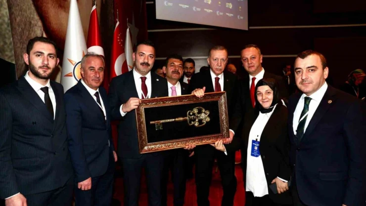 Zonguldak Belediye Başkanı Dr. Ömer Selim Alan, AK Parti heyeti ile birlikte Cumhurbaşkanı Recep Tayyip Erdoğan'a Zonguldak'ın temsili anahtarını takdim etti.