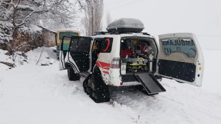 Çankırı'nın yüksek kesimlerinde kar paletli ambulanslar, zorlu kış şartlarında hayat kurtarmaya devam ediyor.